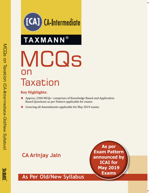 CA Inter MCQs Book on Taxation – Income Tax (Direct Tax) and GST (Indirect Tax) as per old syllabus or new syllabus of ICAI applicable for May 2020 – CA Arinjay Jain (Taxmann). Approx 2300 MCQs, Covering all Amendments applicable for May 2020 exams.