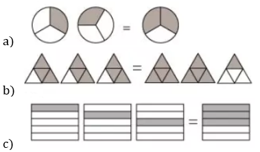 3rd column: \cfrac { 2 }{ 11 } +\cfrac { 7 }{ 11 } +\cfrac { 6 }{ 11 } =\cfrac { 15 }{ 11 }